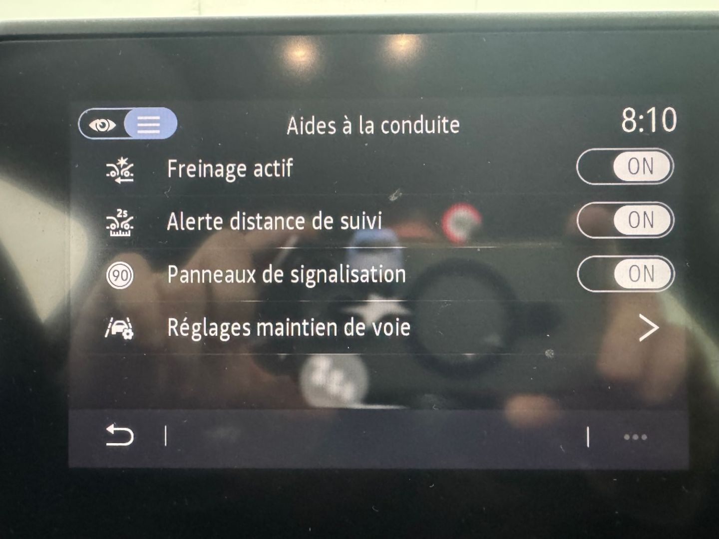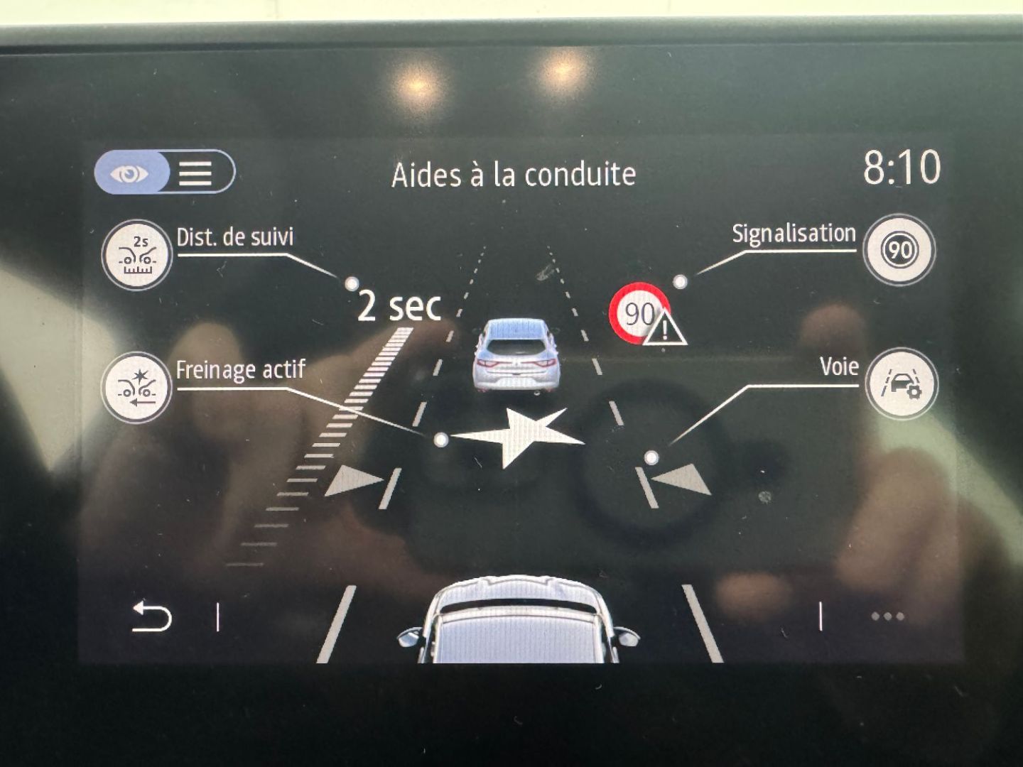 | Alerte de sortie de voie - avertit le conducteur via une vibration du volant quand une ligne est est dépassée sans clignotant - actif à partir de 70 km/h | |
